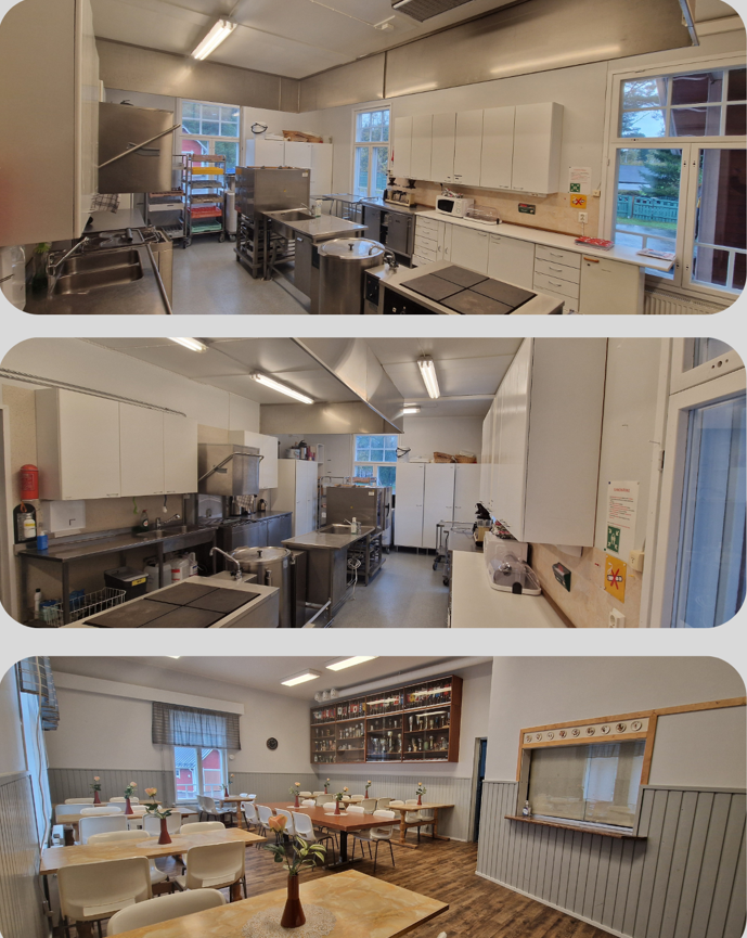 Ravintolatila, joka kattaa 54 m², on varusteltu suurtalouskeittiön laitteilla, kuten astianpesukoneella, liedellä, kiertoilmauunilla, kippikattilalla (80 l) ja kylmätiloilla. Keittiössä on astiasto noin 200 vieraalle, mukaan lukien kahviastiasto, lautaset ja jälkiruokalautaset