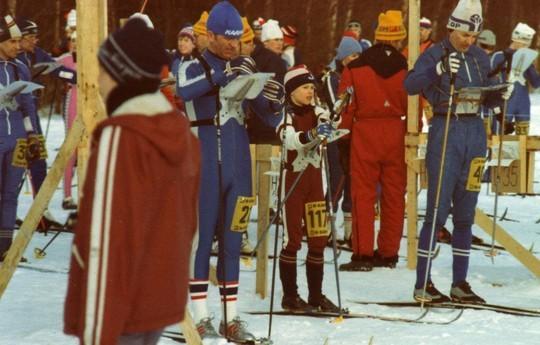 Hiihtosuunnistuskin on ohjelmassa. Jussi-Pekka, 117, lähtökarsinassa 1983.
