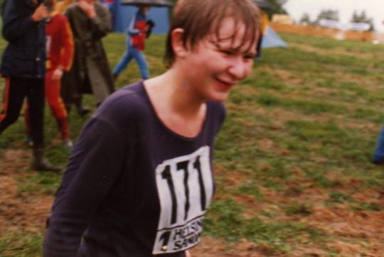 Jukola Rajamäellä 1981. Maarit Venlojen viestin aloitusosuuden jälkeen. Silloin oli tosi märkää.