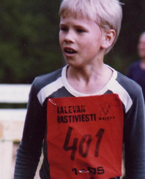 Kalevan rastiviestit Kuusamossa 1982. Jussi-Pekka ensimmäisen osuuden jälkeen.
