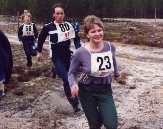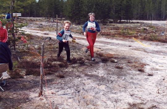 Jonne ja Hanna-Kaisa loppusuoralla Vaalan pm-viesteissä 1982.