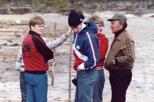 Marko Pikkarainen kuuntelee Jussi-Pekan selityksiä. 1982 Vaala.