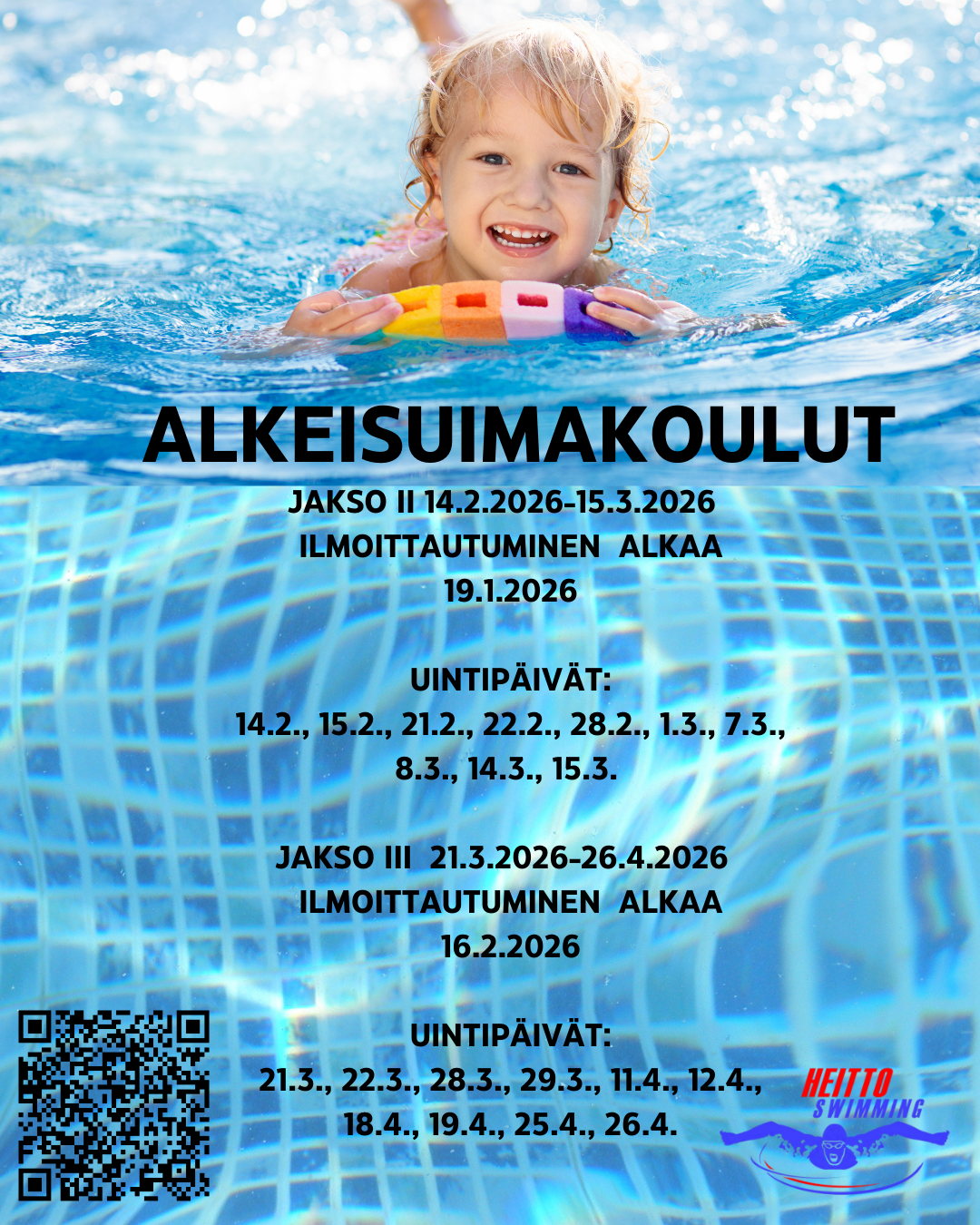 Ilmoittautuminen tammikuussa alkaviin alkeisuimakouluihin on avautunut 1.12.2025.